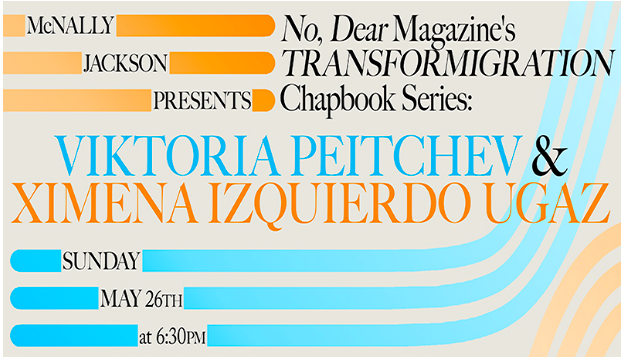On May 26, 2019, I read at one of my favorite bookstores, McNally Jackson in Williamsburg, Brooklyn. It was a celebration of the second edition of the TransforMigration chapbook series, also featuring poets Sonja Hristina Bjelic, Brittany Leitner, and Christina Gayton from No, Dear‘s Issue 22: DIASPORA. I shared selections from Exile in Orbit, and Ximena Izquierdo Ugaz read from her Estoy Tristeza. It was a fantastic No, Dear / McNally Jackson collaboration!